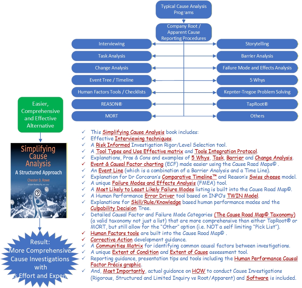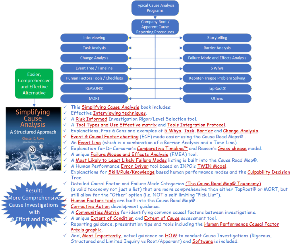 This book is available in book, e-book and Kindle formats and includes a downloadable Interactive Cause Analysis / Investigation Management Software Tool.
